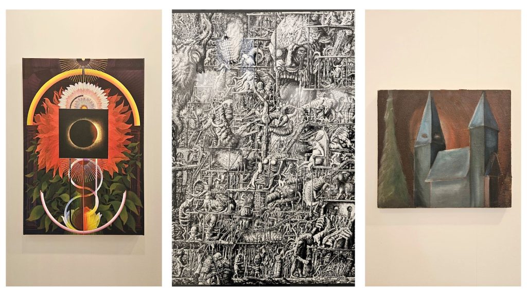 The Onassis Foundation staged a dynamic presentation. Manousos Manousakis’s Cosmologies unfolded in elaborate drawings that reimagined the triad of City (2020), The Slaughterhouse (2022), Child’s Room (2022) invoking dystopian and utopian visions inspired by Kentaro Miura and Hieronymus Bosch.