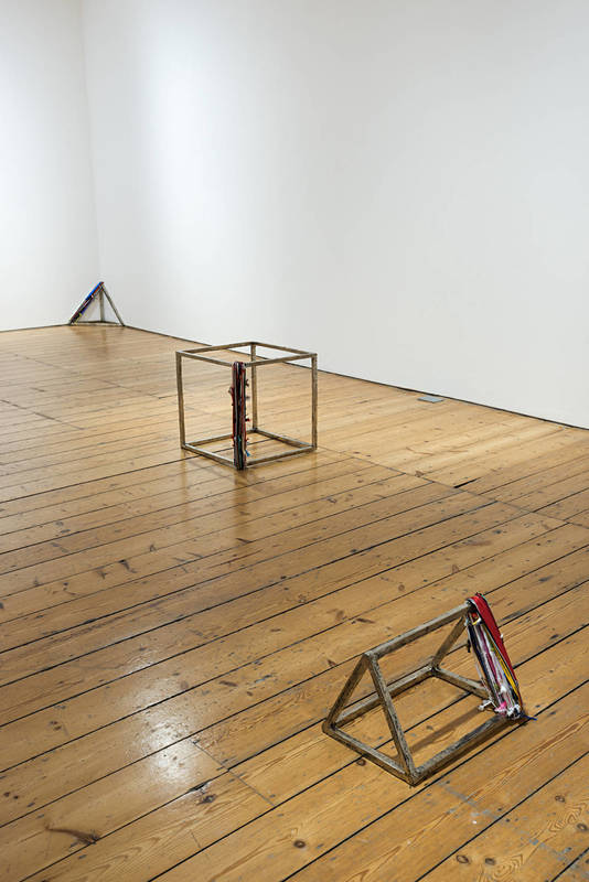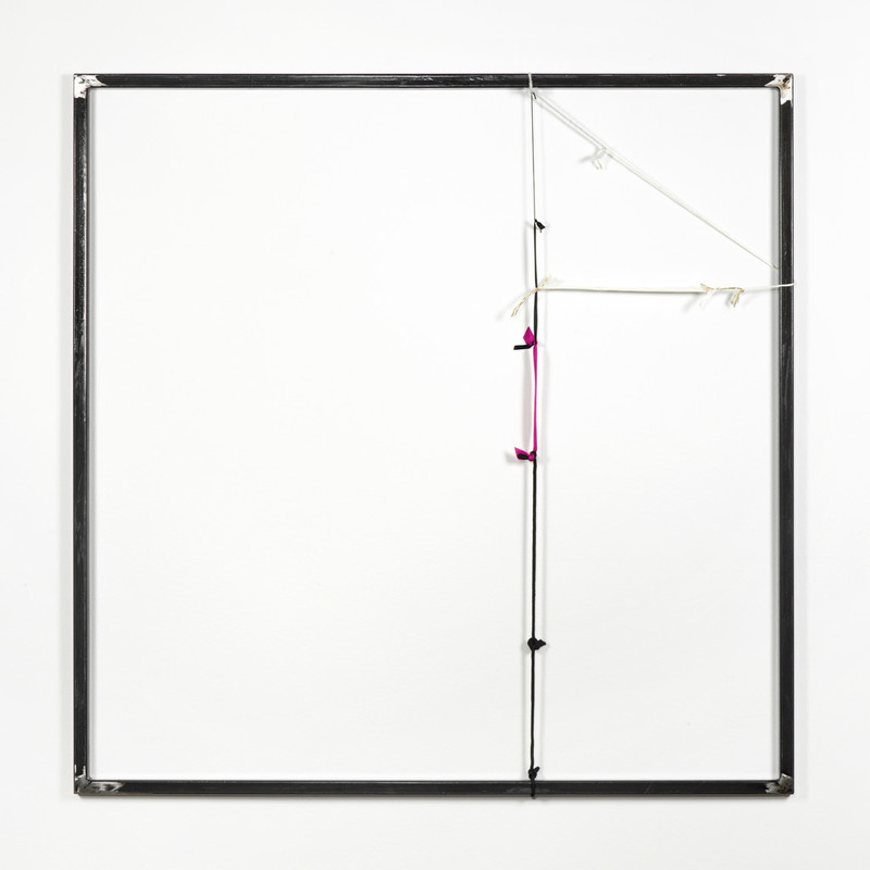 The exhibition also includes two further stool sculptures from the same series, which will be available on commission, and four geometric sculptures in frosted white bronze as well. They link the exhibition with Autumn Lines, his first solo show held at the gallery in 2016. Here the use of a 2,100m ribbon, made by tying fragmented bits of ropes, shoelaces and electrical cables, corresponds with the length of the metal fences and barbed wire raised between Slovenia and Croatia on the 11 November 2015; the first day Europe started raising barriers and closing borders to the flow of migrants.