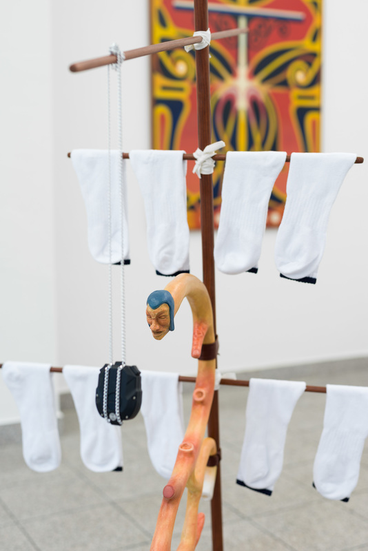 Through the life of French writer François Rabelais (1494-1553), Mikhail Bakhtin examined the evolution of popular humour and folk culture in the Middle Ages. In the context of this exhibition, this is a particularly enlightening text. It explores the principle of ‘grotesque realism,’ which refers to the lowering of all that is abstract, sacred and ideal, to the material level. ‘Underworld,’ too, does exactly this. Fitzpatrick’s paintings and sculptures reduce complex social structures to a ‘base materialism.’