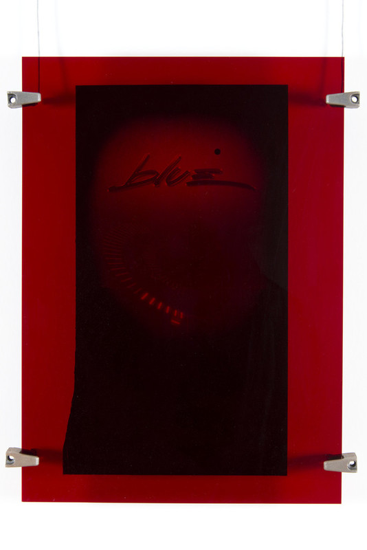 Kerstin Brätsch, Untitled, 2010. Spray painted New York Times advertisement, plexiglass, clamps.