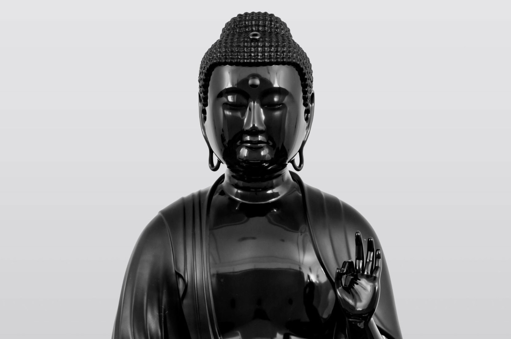 Three recent stone Buddha sculptures will be shown in the Sacristy, arranged in a cruciform composition. Bringing Catholic faith and Buddhist philosophy into proximity, the works reveal the ecumenical dimension of the artist’s practice. Among them is Mirrored Buddha Herms, which creates a visual and conceptual exchange between a 15th-century Japanese sculpture and Ball’s mirrored interpretation in Belgian black marble.