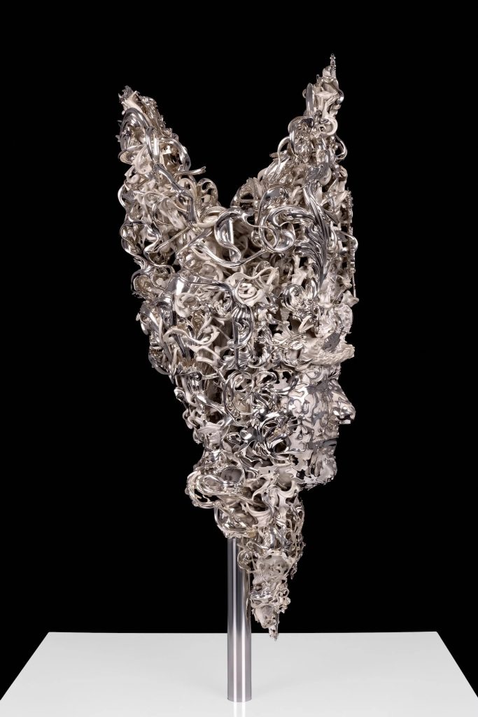 Barry X Ball, Pope Saint John Paul II, 2012-2024. Silver, 18K gold, 28-3/8 x 13-3/8 x 11-1/2 inches.