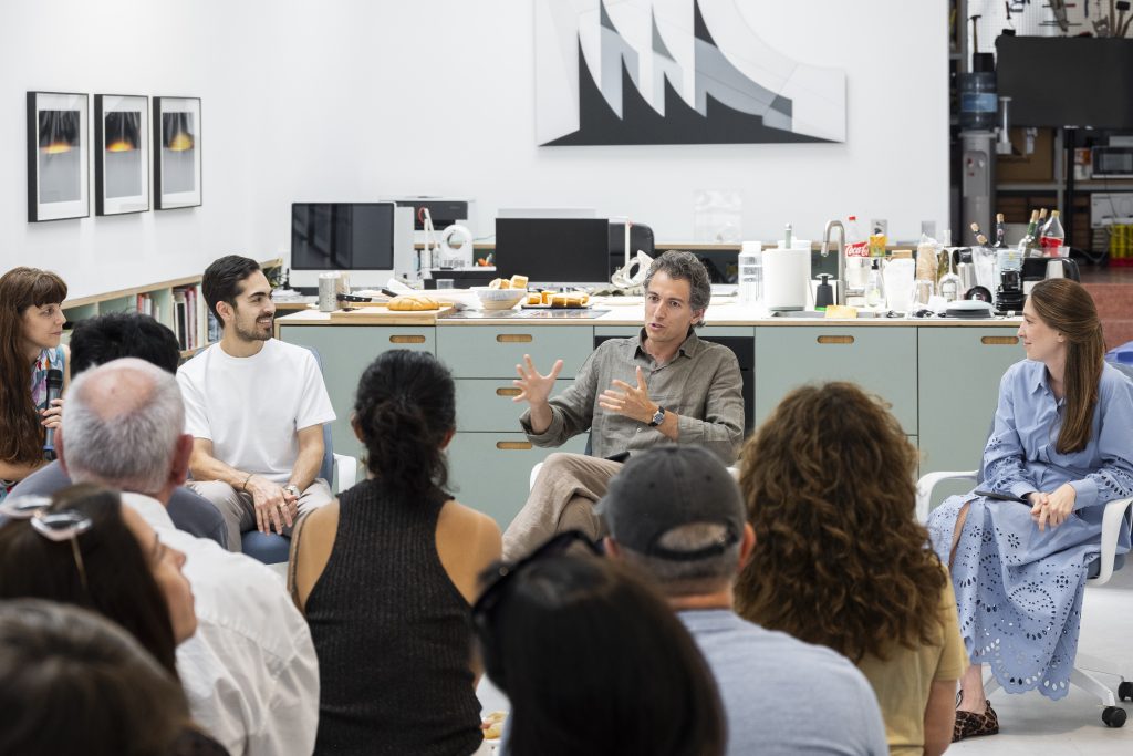 Peiro Tomassoni, Claudia Paola Pérez, Cyrus Mahboubian, and Evelyn Sosa during Paella & Talk at Estudio Carlos Garaicoa © Estudio Carlos Garaicoa